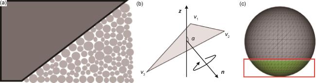 图1 悬垂结构示意图(a)悬垂结构;(b)三角面片判别方法;(c)三维模型悬垂三角面片识别示意图Fig.1 Schematic diagram of overhanging structure (a)overhanging structure;(b)discriminant method of triangular slice;(c)recognition diagram of three dimensional model overhanging triangle |