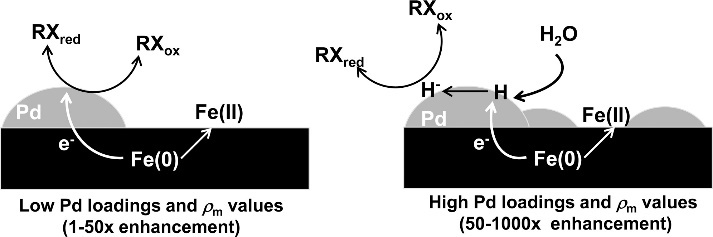 | Pd/Ni-nZVI | H* | Tafel, Kinetic Analysis | TCE | pH = 8, 10 mg/L TCE, 1 g/L Pd/Ni-nZVI | 6 |
