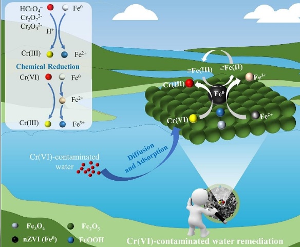| nZVI@CBC | Fe(II) and H* | XPS Analysis | Cr(VI) | pH = 7.0, 4 mg/L Cr(VI), 2.5 g/L nZVI@CBC | 16 |