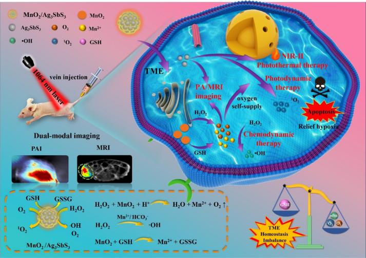MnO2/Ag3SbS3 | Breast cancer | CDT/PDT | The tumor growth was mostly inhibited or even eliminated when treated with MA+L after 14 days of treatment | 68 | |