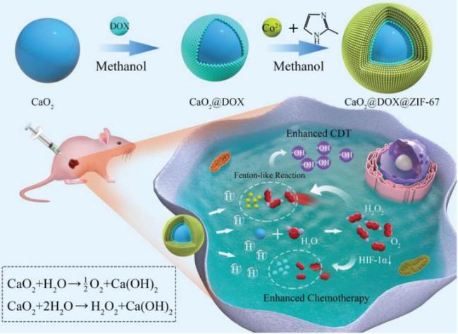 CaO2@DOX@ZIF-67 NPs | Breast cancer | CDT/chemotherapy | The group treated with CaO2@DOX@ZIF-67 exhibited the strongest tumor suppression effect | 56 | |