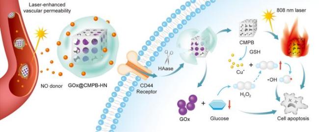 Cu | GOx@CMPB-HN | Breast cancer | CDT/ Starvation therapy/PTT | The calculated tumor inhibition rates of the GOx@CMPB-HN+laser group was up to 90.29% | 73 |