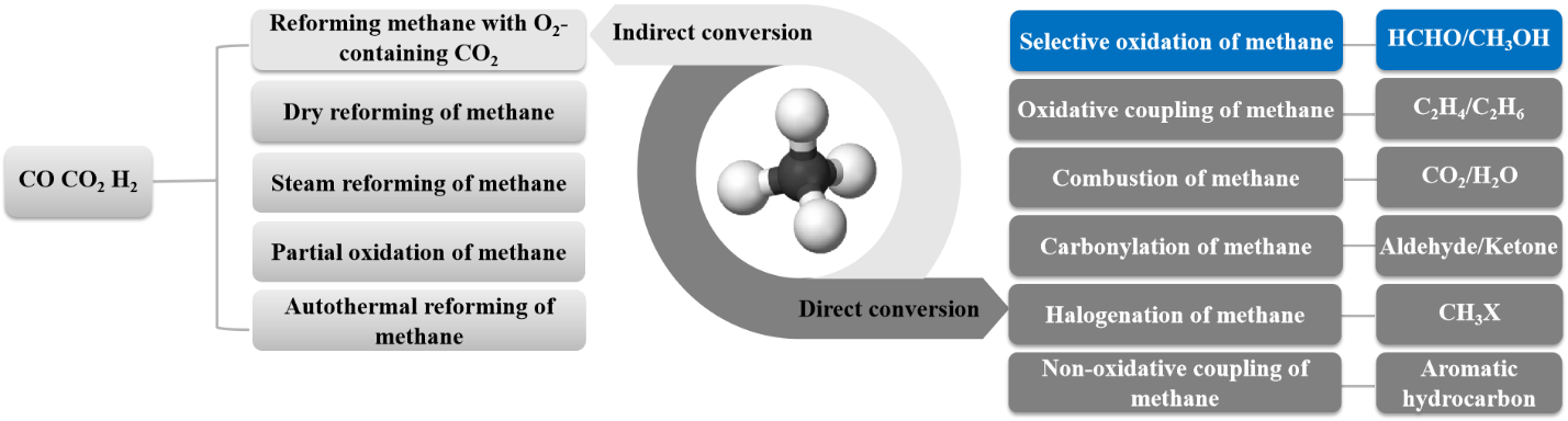 Key words: methane; gas-phase selective oxidation; formaldehyde; reaction mechanism; catalyst