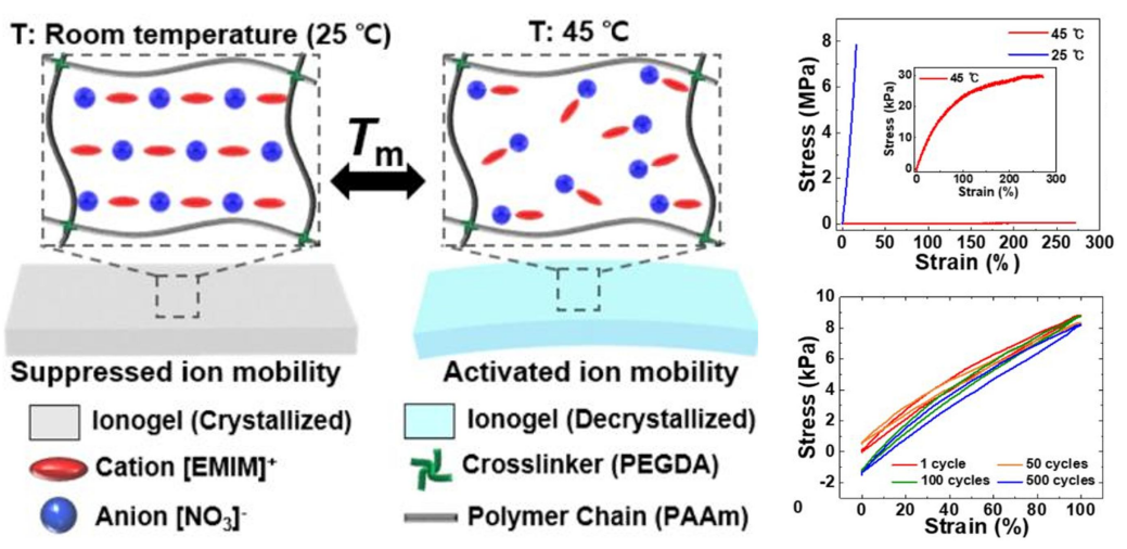 | Forming microphase-separated structures | Introducing phase-transition factors | Phase transition-induced chains rearrangement, crystalline-amorphous transition | Dynamic smart response, wide-temperature adaptability | Limited phase transition temperature, poor cyclic thermal stability | Solid electrolyte field, microfluidic chip, etc |