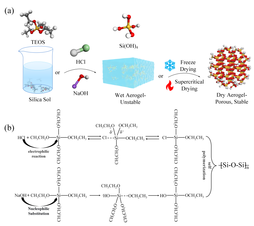 a) λ: Thermal conductivity; TEOS: ethyl orthosilicate; MTMS:methyltrimethoxysilane; TMCS: trimethylsilyl chloride; ASB: aluminum tri-sec-butoxide; DMF: N,N-dimethylformamide CNT: carbon nanotubes; APTES: (3-aminopropyl)triethoxysilane; DEMS: diethoxymethylsilane |