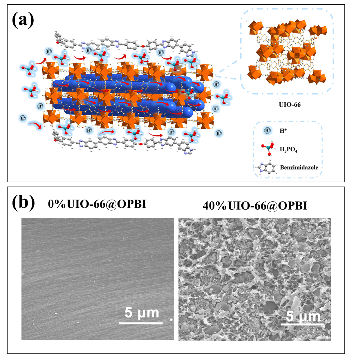 | 40%UIO-66@OPBI [HT, 69.70±0.74] OPBI | 92 | 63.13% (PA) | 3.09 | 583 (160 ℃, 0%RH) | 27.02±1.51 | 500 h 0.15 (OCV) | 49 | |