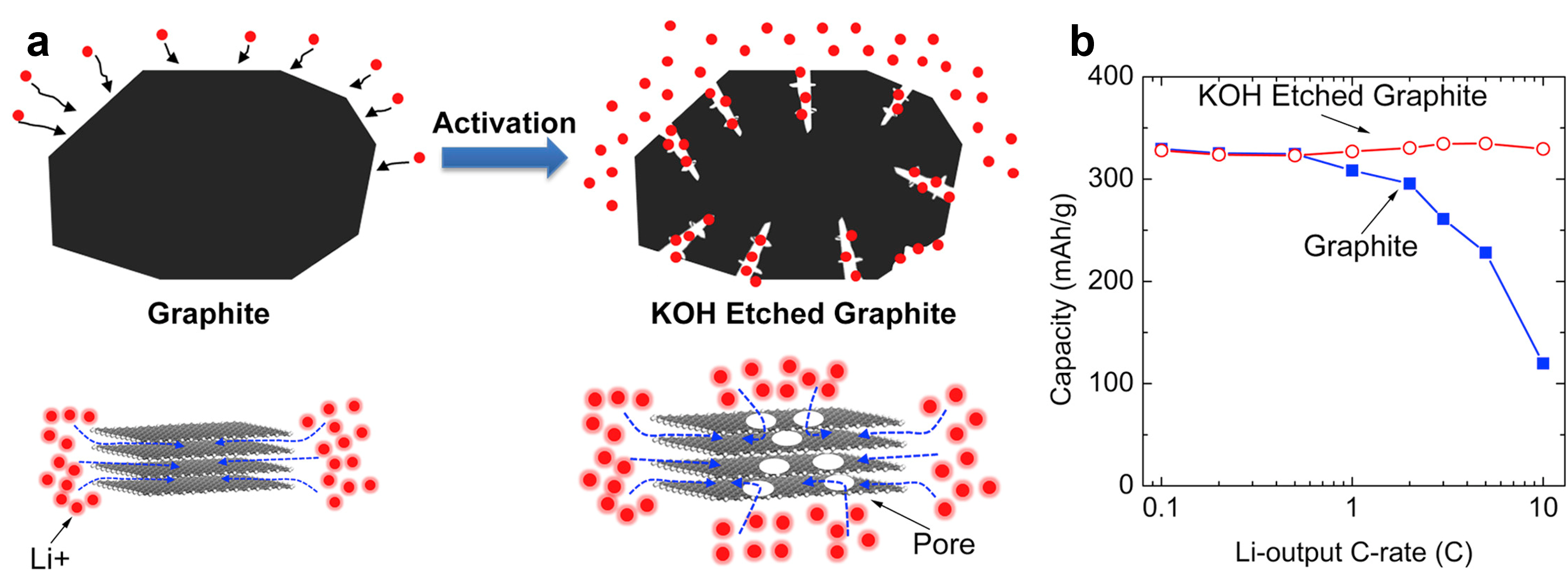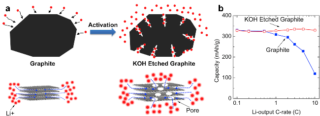 | Structure design | KOH-etched graphite[52] | 6 C, 100,74% | 6 C, 74 mAh/g |