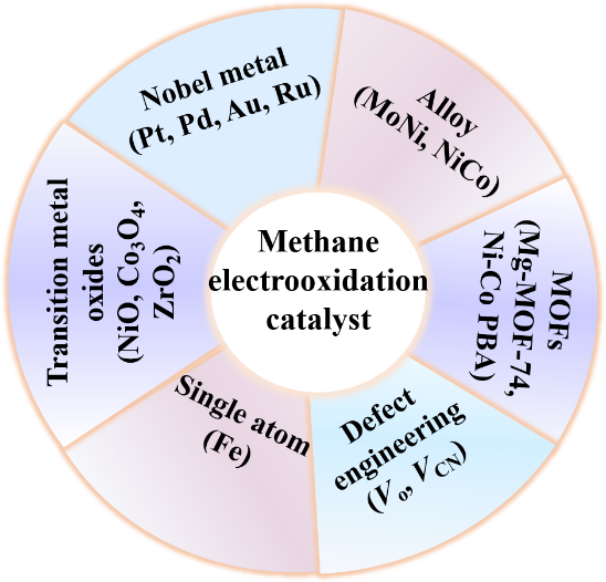 This article reviews the challenges and recent advancements in the utilization of methane (CH4) resources via low-temperature electrochemical oxidation (CH4OR) for producing value-added chemicals. Conventional indirect pathways, including methane reforming, are energy-intensive and operate under harsh conditions. In contrast, thermal catalytic partial oxidation frequently results in over-oxidation, thereby limiting its practical applications. In contrast, electrochemical CH4OR represents a promising alternative, facilitating efficient methane conversion under mild conditions, compatible with renewable energy sources, and providing advantages in product separation and transport. This review explores the mechanistic aspects of C—H bond activation during CH4OR, encompassing both direct and radical-mediated indirect pathways.