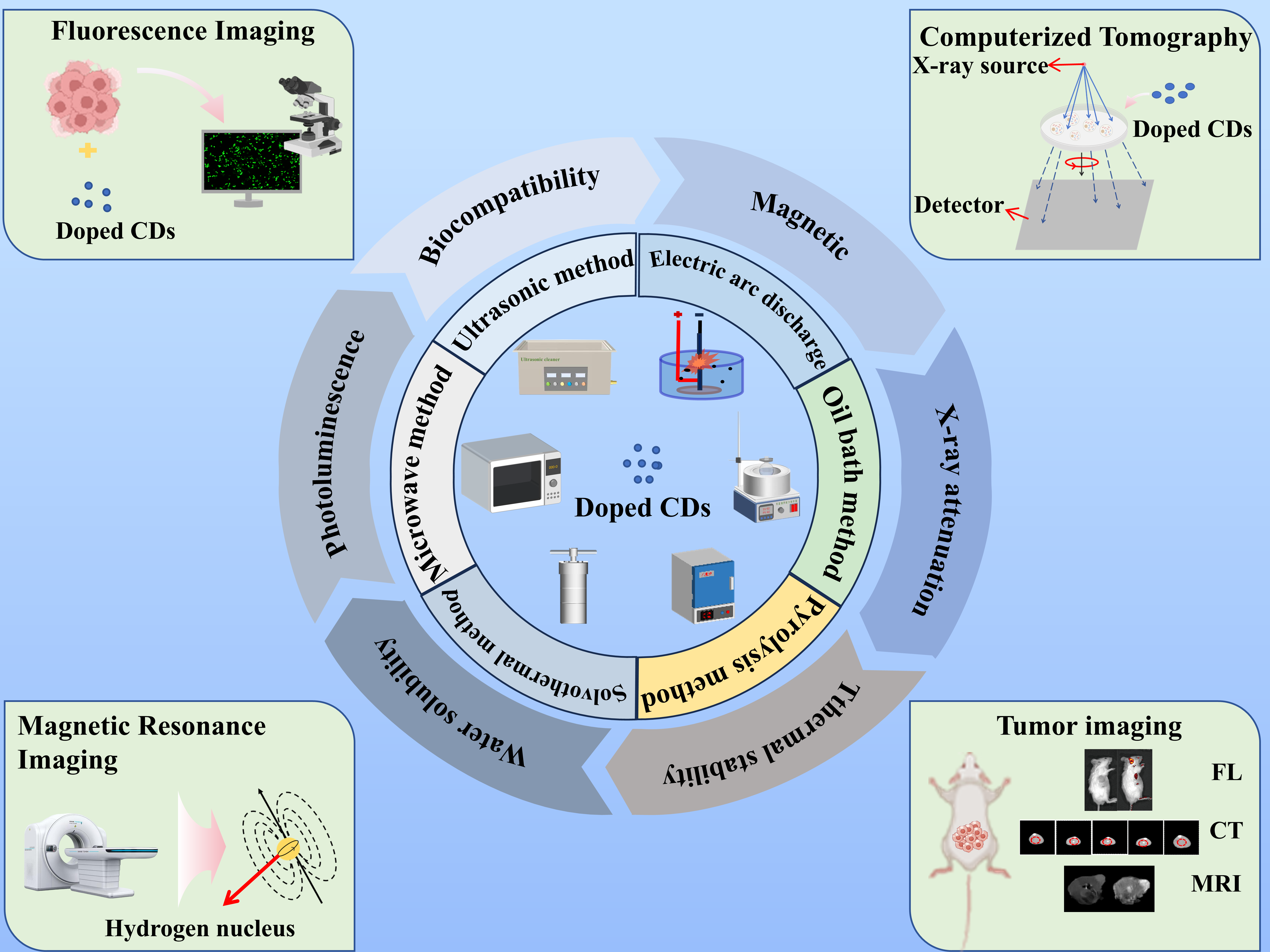 Carbon dots (CDs), as an emerging class of zero-dimensional carbon nanomaterials, have demonstrated significant potential in the field of biomedical imaging due to their unique photoluminescence properties, excellent biocompatibility, and low toxicity. This review systematically summarizes the recent progress in the application of CDs as dual-modal or multimodal probes in computed tomography (CT), magnetic resonance imaging (MRI), and fluorescence imaging (FL). It particularly focuses on the synergistic effects of metal ion and heteroatom doping on the physicochemical properties of CDs, with an emphasis on their optical, magnetic, and X-ray attenuation characteristics. The findings reveal that element doping and surface functionalization can significantly enhance the performance of multimodal imaging. For instance, doping with metal ions or heteroatoms can effectively improve the relaxivity in MRI/FL dual-modal imaging and optimize the X-ray attenuation properties in CT/FL dual-modal imaging. Furthermore, some CD-based nanomaterials have successfully achieved MRI/CT/FL trimodal imaging, providing innovative solutions for precision medicine. Despite the progress made, CDs-based multimodal probes still face several challenges, including the imbalance in multimodal performance and the lack of comprehensive long-term biosafety assessments. For future clinical translation, further optimization of material design and the implementation of standardized toxicological evaluations will be essential. These efforts will significantly advance the diagnosis and treatment of diseases.