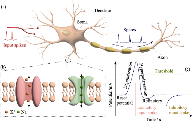 | Type | Device structure | Physics | Auxiliary circuit | Operation stimulus | Highest output frequency | Energy consumption per spike | Advanced function | Ref. |