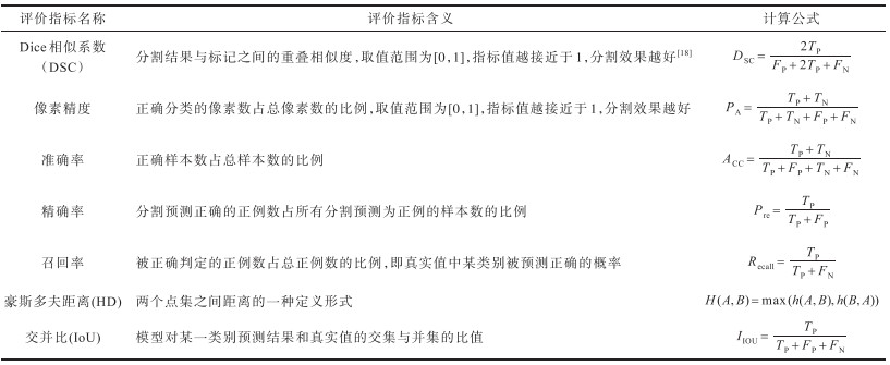 表2 图像分割评价指标Table 2 Evaluation indexes of image segmentation |