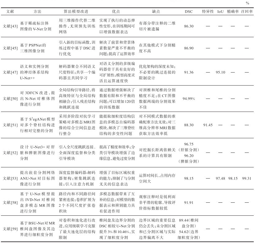 表6 国内基于深度学习对脊柱图像分割的研究Table 6 Research on spinal image segmentation based on deep learning in China |