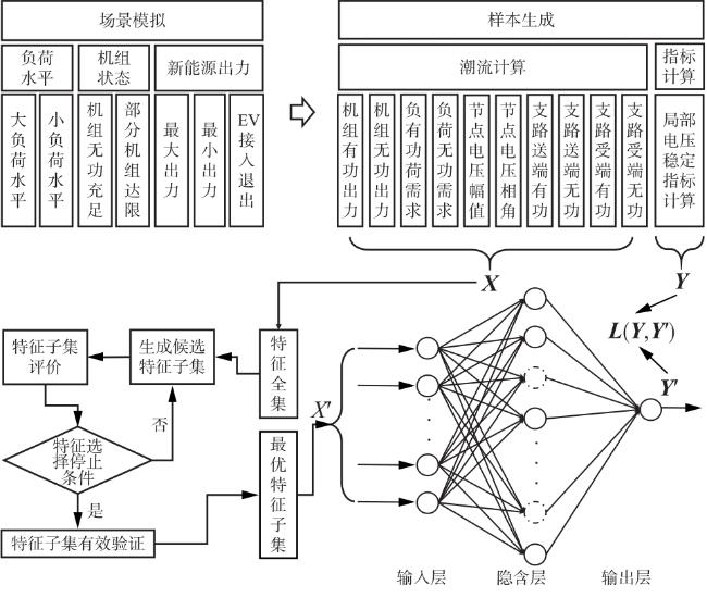 As the construction of new power system gradually takes shape, the trend of source-load separation is becoming more and more obvious and its randomness is increasing, making the problem of voltage stability increasingly prominent. Under the new circumstances, the grid urgently needs a voltage stability assessment method with high accuracy, fast response speed and good extensibility. The static voltage stability assessment problem is defined as regression problem and artificial neural network is constructed to assess the problem online. Firstly, the training sample set is obtained by scenario simulation, power flow calculation and local voltage stability index calculation. Then the RReliefF method is used to sort the features and eliminate the attributes with low weight to improve the training efficiency. Then the mapping relationship between key features and voltage stability is obtained by artificial neural network training. Finally, taking the modified IEEE39-node system as an example, six groups of experiments are set and a simple linear weighting method is introduced to calculate a comprehensive evaluation index about the speed and accuracy of the model to verify that the proposed method has ideal modeling speed and high accuracy, and can meet the requirements of voltage stability assessment of power system under the new situation.