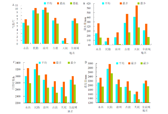 | 气候因素 | 季节 | 全流域 | 永昌 | 民勤 | 凉州 | 古浪 | 天祝 |
