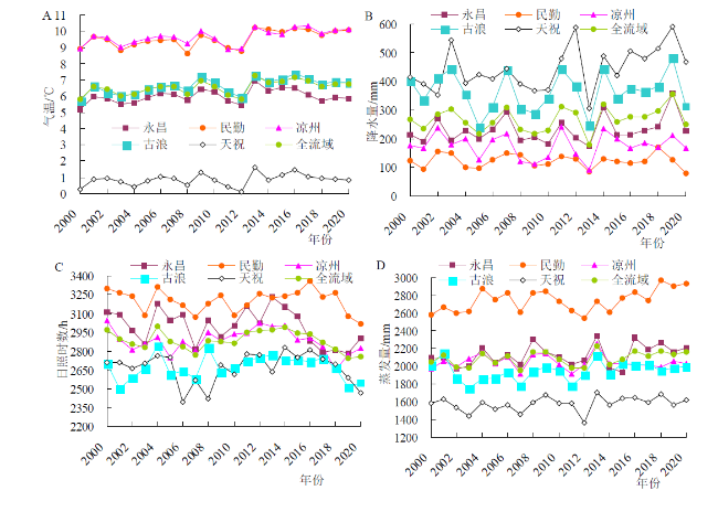 | 气候因素 | 时段 | 全流域 | 永昌 | 民勤 | 凉州 | 古浪 | 天祝 |