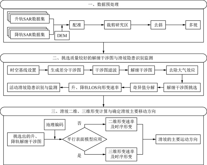 Multi-dimensional deformation inversion of landslides using combined sentinel-1A ascending and descending orbit data