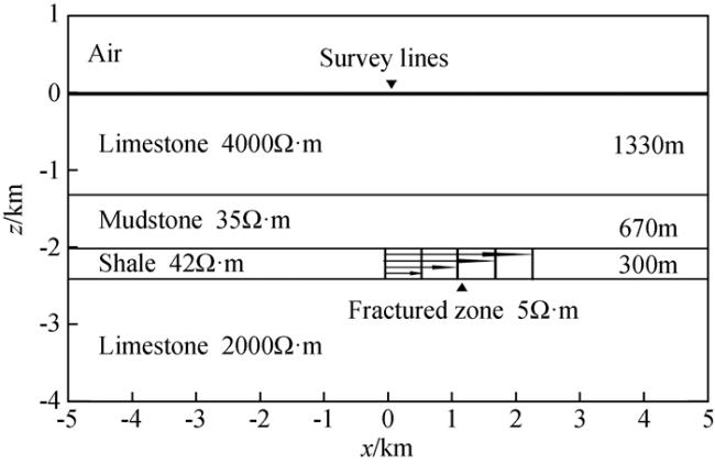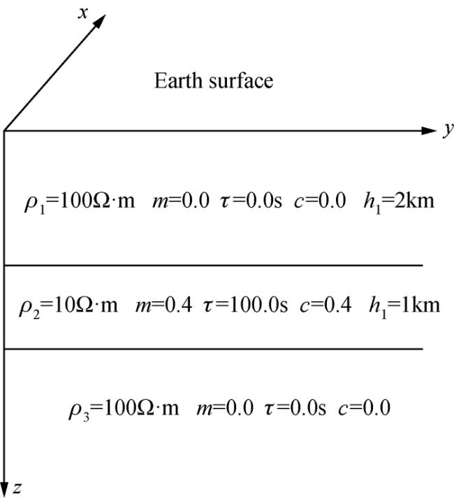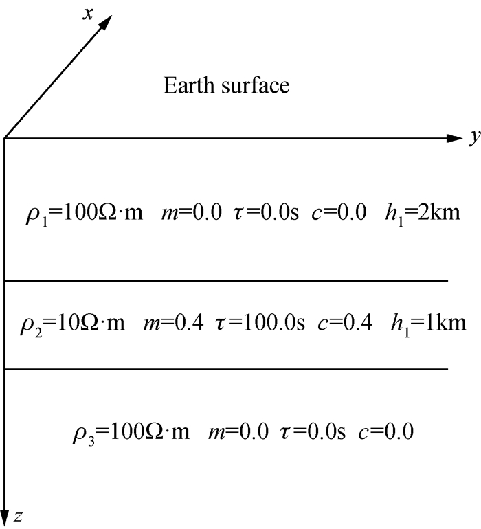 | 地层序号 | 真电阻率 ρ/(Ω·m) | 厚度/m | 极化率m | 时间常数τ/s | 频率相关系数c |