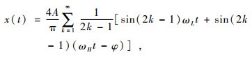 图10 双频信号波形及其频谱(a,d)双频组合矩形波及其频谱;(b,e)低通滤波后的双频组合矩形波及其频谱;(c,f)双频组合正弦波及频谱. Dual frequency signal waveform and its spectrum (a, d)Dual frequency combined rectangular wave and its spectrum; (b, e)Dual frequency combined rectangular wave and its spectrum after low-pass filtering; (c, f)Dual frequency combined sine wave and its spectrum. |