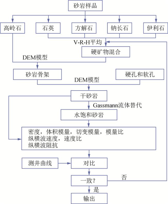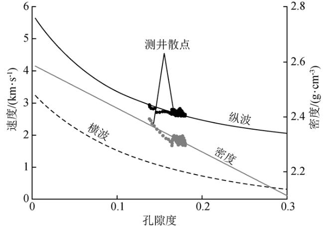 | 矿物组成 | 含量/% | 密度/(g·cm-3) | 体积模量/GPa | 剪切模量/GPa |