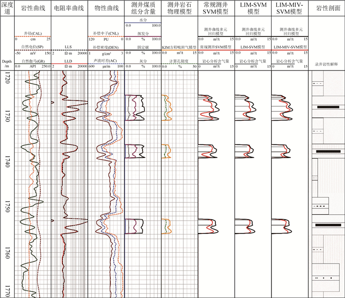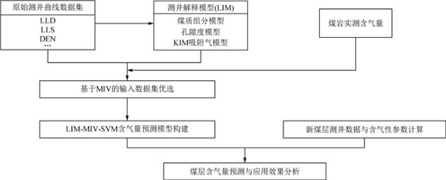 In order to further improve the prediction effect of Coalbed Methane (CBM) content by using the geophysical well logging technology, this study introduced the coal reservoir parameters calculated by Log Interpretation Model (LIM) into the construction process of the CBM content prediction model. And the input parameters of Support Vector Machine (SVM) were optimized based on the Mean Impact Value (MIV) method. Finally, a LIM-MIV-SVM model for predicting CBM content was constructed using grid search method. And the CBM content prediction effects of the LIM-MIV-SVM model were compared with multiple regression model, conventional logging SVM model and LIM-SVM model by using the actual logging data from Huainan coalfield. The application results show that the proposed LIM-MIV-SVM model has the highest prediction accuracy, followed by the LIM-SVM model and the conventional logging SVM model, and the multiple regression model has the lowest prediction accuracy. This indicates that machine learning method have advantages over traditional logging interpretation method, and introducing gas content parameters calculated by LIM reasonably is effective for improving the prediction accuracy of CBM content. The LIM-MIV-SVM model is jointly optimized through multi-source logging data fusion and input dataset selection, which can provide technical support for CBM resource exploration and reservoir evaluation. Moreover, this research method and modeling strategy can be suitable for other machine learning modeling research fields.