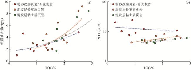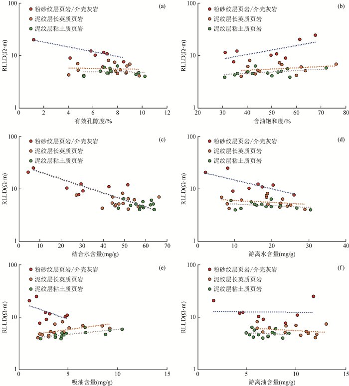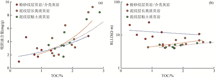 | 物性及含油性参数 | 总体 | 介壳灰岩 | 粉砂纹层页岩 | 泥纹层长英质页岩 | 泥纹层黏土质页岩 | |
