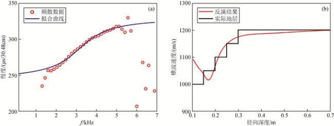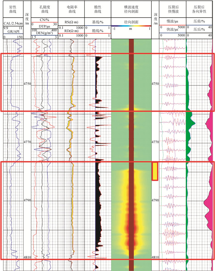 图7 致密地层横波速度剖面与多种测井结果对比示意图(赵龙等,2014)Figure 7 Comparison of radial shear-wave velocity profile with several logging results (Zhao et al., 2014) |