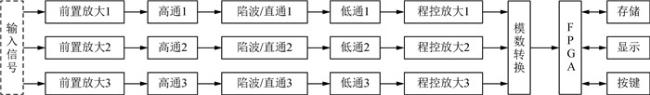A 3-channel electromagnetic signal acquisition platform based on FPGA is designed by utilizing the rich on-chip resources and powerful parallel processing capability of FPGA. At the same time, the three signals can be pre-amplified, signal conditioning, analog-to-digital conversion and stored in the memory, and then processed by the upper computer. At room temperature, two sets of standard sinusoidal signals with frequency of 2n Hz(-2≤n≤13), and amplitude of 1 V are collected, after correction, the relative error between the actual measurement amplitude and the theoretical value of the acquisition platform is less than 0.1%, and the root mean square error of the channel is less than 0.024%. This platform has high acquisition accuracy and great potential for function expansion.