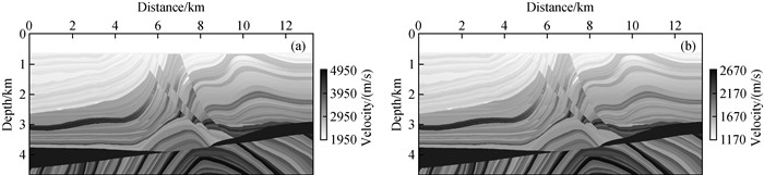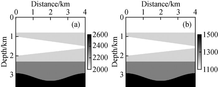 图3 简单的凹陷地形模型Fig 3 Simple concave terrain model (a)P-wave velocity; (b)S-wave velocity. |