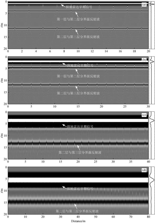 The Ground Penetrating Radar (GPR) Early-Time Signals (ETS) generated by ground-coupled antennas operating in close proximity to the ground exhibit characteristics such as early arrival, strong energy, stable waveform, and clear phase. Their duration is approximately one signal cycle, causing significant interference with signals such as reflections, diffractions, and scatterings from near-surface media occurring within the same time frame. Artificially constructed structures are typically designed as layered structures with fixed layer thicknesses. To this end, a series of vertical cracks with different burial depths are set up in a layered medium model to numerically investigate the detection depth of GPR ETS from antennas with different operating frequencies, as well as the relationship between the dielectric constant of the medium within the detection depth and the amplitude intensity of the GPR ETS. The research results indicate that, compared to multi-offset measurement methods, the fixed-offset profiling method provides a more convenient and intuitive approach to measuring the detection depth of GPR ETS. The detection depth of GPR ETS is inversely proportional to the operating frequency of the antenna, meaning that a lower operating frequency results in a deeper detection depth. Furthermore, the amplitude intensity of GPR ETS is closely related to the dielectric constant of the medium within the detection depth; the higher the dielectric constant, the lower the corresponding amplitude intensity of the GPR ETS, which aligns with the verification results obtained from actual radar data. This study provides an important basis for utilizing the amplitude intensity of GPR ETS to judge abnormal changes in the dielectric constant of media within the detection depth.