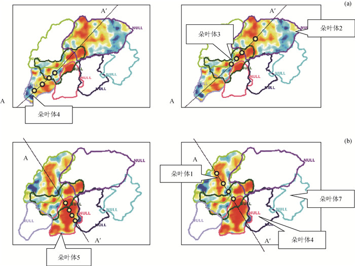 图5 过湖底扇朵叶体反射强度属性变化测线分布图Fig 5 Distribution map of profile measurement lines for changes in reflection intensity attributes of fan leaves passing through the sublacustrine fan |