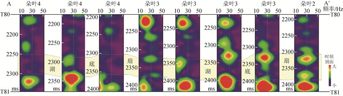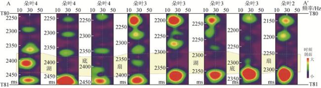 图6 过湖底扇朵叶体测线1的时频分析图Fig 6 Time frequency analysis diagram of the fan blade body passing through the sublacustrine fan, line 1 |