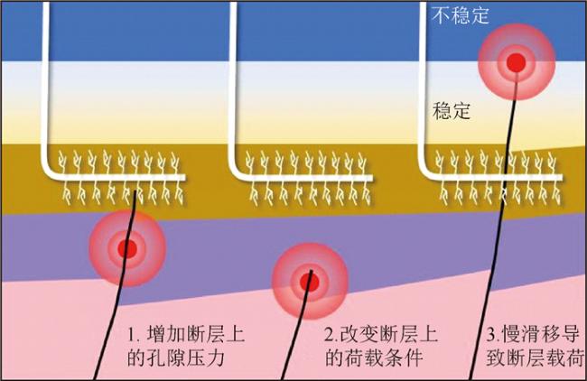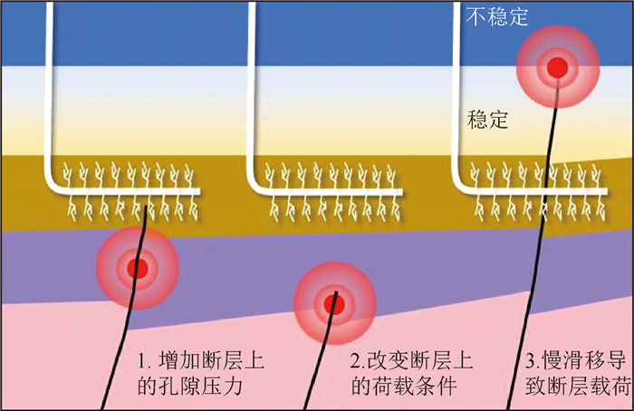 图1 流体注入诱发地震的三种诱发机制(引自张捷等, 2021)Fig 1 Three main mechanisms of the fluid injection induced earthquakes(modified from Zhang et al., 2021) |