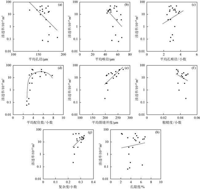 表2 孔隙结构参数与渗透率相关系数表Table 2 Table of correlation coefficients between pore structure parameters and permeability |