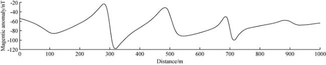| 模型体编号 | 模型体类型 | 边长或半径/m | 上顶或质心埋深/m | 下底/m | 有效磁化倾角/(°) | 磁化强度/(A·m-1) |