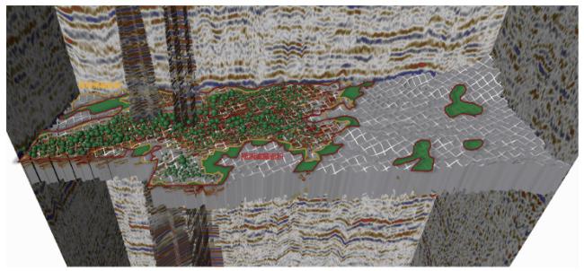The Chang6 reservoir of Ansai Oilfield in the eastern Ordos Basin is a representative example of a low-porosity and extra-low permeability reservoir, characterized by unfavorable physical properties and significant heterogeneity.Traditional reservoir modeling methods are difficult to effectively describe the heterogeneity changes between reservoirs in low-porosity and extra-low permeability reservoirs, which cannot meet the needs of precise oilfield development plan adjustment.Therefore, in order to meet the technical requirements of increasing oil production, the seismic reservoir modeling technology for low-porosity and extra-low permeability reservoirs is explored based on the development seismic of the first block in Ordos Basin.The multi-information seismic-constrained reservoir modeling is proposed.On the basis of combined well-seismic structural modeling and fracture modeling, combined with seismic attributes, the sedimentary microfacies model was constructed by deterministic modeling method based on the results of single-sand level sedimentary microfacies.Under the constraints of sedimentary microfacies model and spatial classification of seismic lithology probability body, a high-precision lithofacies model is established by using sequential Gaussian simulation method.Based on the lithofacies model, the seismic porosity inversion body is usedto further constrain the spatial classification and establish the porosity model.The permeability model is calculated by the empirical formula of pore-permeability relationship, and the oil saturation model is established by Kriging interpolation method. The results show that the seismic constrained reservoir model exhibits evident features of evolving reservoir physical properties, well-defined reservoir boundaries, and clear interlayer configuration relationships.The reliability of the reservoir model established through this technology is further substantiated by analyzing production dynamic data, enabling precise characterization of multi-stage thin sand-body reservoir groups.The technology takes advantage of abundant information of lateral changes of development seismic, solves the problem of inter-well uncertainty of traditional stochastic simulation modeling method, and realizes fine characterization of physical property distribution law of significant heterogeneous reservoirs.The seismic constrained reservoir model has been applied to perfect the corresponding relationship between injection and production and reservoir edge expansion.It provides effective technical support for the stable production of Ansai oilfield and promotes the application of development seismic in Ordos Basin.