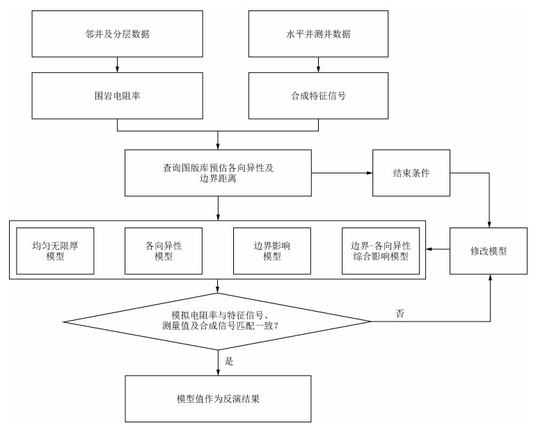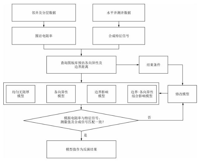 The electromagnetic wave resistivity logging tool for Logging While Drilling(LWD) is one of the most widely used logging tools in horizontal well development. However, the anisotropy of the formation and the distance between the surrounding rock and the boundary in the horizontal well environment can cause distortion in the electromagnetic wave resistivity measurement values, leading to the common problem of low drilling rate in the development of thin reservoirs. In this paper, taking the electromagnetic wave LWD resistivity tool of CNLC as an example, the numerical simulation method is used to investigate the instrument response law in the horizontal well formation, and the characteristic signals indicating the boundary distance and anisotropy of the formation are defined and quantified, and the combination of characteristic signals and classification inversion is used to realize the quantitative calculation of the anisotropy and multiple boundary distances of the conventional electromagnetic wave LWD resistivity tool in complex formations. The boundary distance, horizontal resistivity and vertical resistivity calculated by inversion are consistent with the changes in borehole trajectory, the response characteristics of logging curves and the formation occurrence information displayed by borehole imaging, which verifies the rationality of the method. This method is suitable for obtaining boundary distance, anisotropy and formation resistivity parameters from conventional LWD instruments, quantifies the boundary detection ability of conventional electromagnetic wave resistivity instruments, provides a new idea for precise geological guidance of thin-bedded and complex oil and gas reservoirs, and provides a technical method for the fine evaluation of post-drilling formations, and has great potential application value.