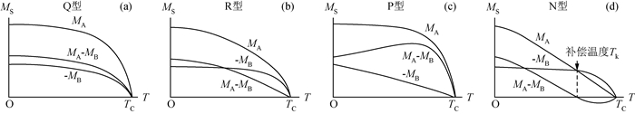 图3 单磁相亚铁磁性晶粒的四种热磁曲线示意图(修改自Dunlop and Özdemir, 1997)(a—d)分别为Q型、R型、P型和N型热磁曲线. Fig 3 Four types of thermomagnetic curves in single-phase ferrimagnetic grains(modified from Dunlop and Özdemir, 1997) (a—d) Represent Q-type, R-type, P-type, and N-type thermomagnetic curves, respectively. |